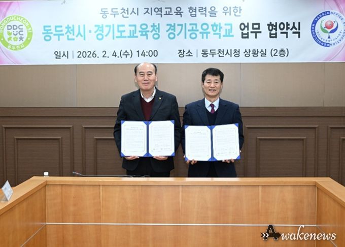 어웨이크뉴스 오경하 기자 | 동두천양주교육지원청과 동두천시는 2월 4일, 동두천시청에서 지역교육협력을 위한 ‘동두천시-경기도교육청 경기공유학교 업무협약'을 체결했다.