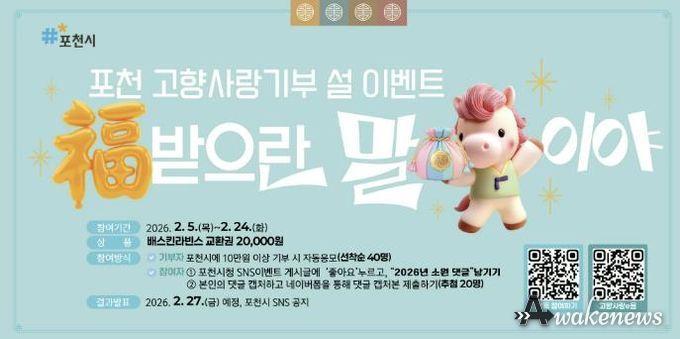 포천시 관계자는 “이번 이벤트가 고향사랑기부제에 대한 시민 관심을 높이고, 새해 소망을 함께 나누는 계기가 되길 바란다”며 “시민 모두가 따뜻하고 행복한 명절을 보내시길 기원한다”고 말했다.