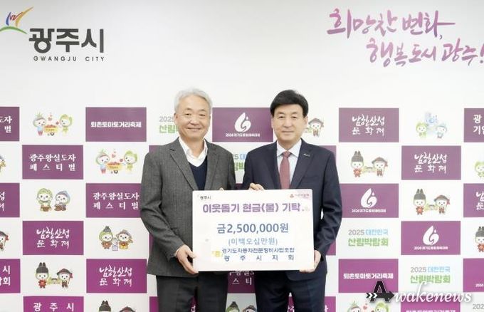 어웨이크뉴스 오경하 기자 | 경기도자동차전문정비사업조합 광주시지회는 지난 4일 지역 내 저소득 가정을 돕기 위해 성금 250만 원을 광주시에 기탁했다.