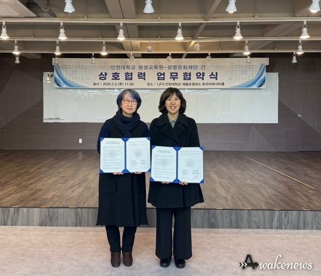 어웨이크뉴스 오경하 기자 | (재)광명문화재단은 인천대학교 평생교육원과 함께 2월 5일 오전 11시에 인천대학교 평생교육원에서 '무대예술 전문인력양성 및 공연예술 분야의 공동 발전을 위한 업무협약'을 체결했다고 밝혔다.