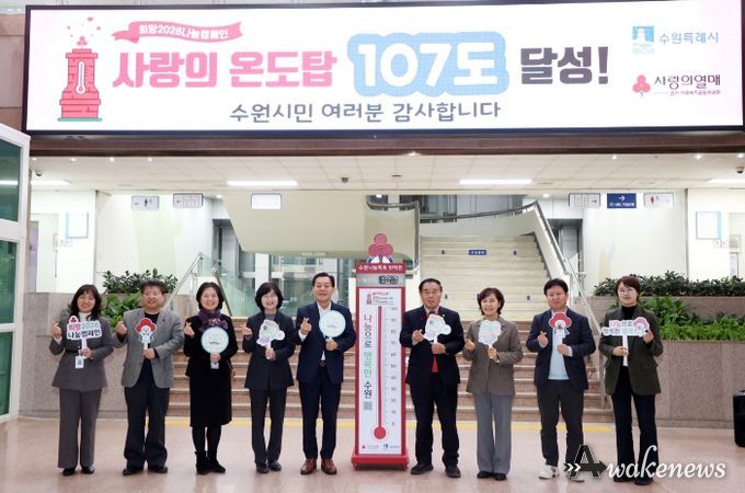 어웨이크뉴스 오경하 기자 | 수원특례시의회는 2월 5일, 시청 본관 1층 로비에서 열린 ‘사랑의 온도탑’ 폐막식에 참석해 시민과 함께한 나눔의 의미를 되새겼다.
