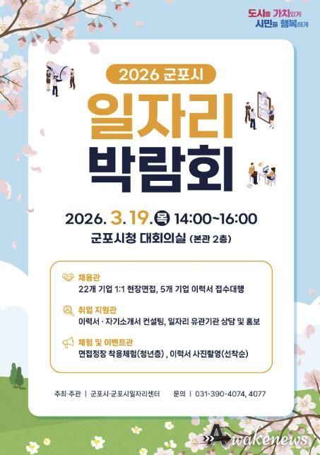 어웨이크뉴스 오경하 기자 | 군포시는 오는 3월 19일 오후 2시부터 시청 대회의실에서 ‘2026년 군포시 일자리 박람회’를 개최함에 따라 2월 10일부터 2월 27일까지 박람회에 참여할 기업체를 모집한다.