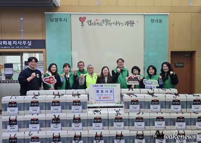어웨이크뉴스 오경하 기자 | 남양주시는 지난 5일 평내호평을 사랑하는 모임이 설 명절을 맞아 김 선물세트 50박스를 평내동 지역사회보장협의체에 기탁했다고 6일 밝혔다.