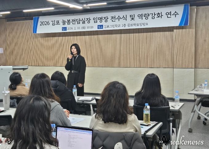 어웨이크뉴스 오경하 기자 | 경기도김포교육지원청은 2월 10일 2026 늘봄전담실장 25명을 대상으로 임명장 전수식과 함께 초등 방과후·돌봄 교육 운영의 전문성 및 현장 대응 역량 강화를 위한 ‘2026 늘봄전담실장 역량강화 연수’를 실시했다.