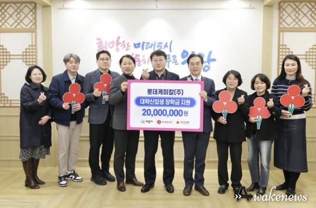 이번 장학금은 롯데케미칼 임직원이 매월 급여에서 자율적으로 기부한 금액에 회사가 동일한 금액을 더하는 ‘매칭그랜트’ 방식으로 조성됐으며, 롯데케미칼 임직원들의 따뜻한 마음이 담긴 후원금은 각 100만 원씩, 대학 신입생 20명에게 지원될 예정이다.