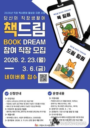 어웨이크뉴스 오경하 기자 | 고양특례시는 장시간 근무와 업무 중심 생활로 독서가 어려운 직장인을 위해, 기업체로 직접 찾아가는 독서문화 활성화 사업 ‘책드림(Book Dream)’을 운영한다고 밝혔다.