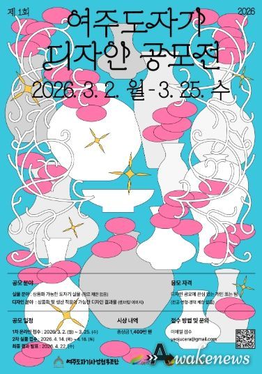 어웨이크뉴스 오경하 기자 | 대한민국 대표 도자 생산지 여주시가 도자산업 전반을 조망하고, 도자 디자인의 창의적 확장을 위해 ‘제1회 여주도자기 디자인 공모전’을 개최한다. 이번 공모전은 혁신적인 도자 디자인을 발굴해 문화관광 콘텐츠로 확장하는 데 의미가 있으며, 수상작은 오는 5월 1일부터 10일까지 열리는 제38회 여주도자기축제 기간에 전시할 예정이다.