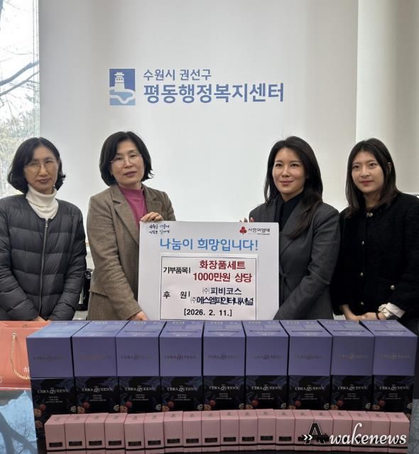어웨이크뉴스 오경하 기자 | 지난 11일, 권선구 평동 행정복지센터는 ㈜피비코스와 ㈜에스엠피인터내셔널이 약 1천만 원 상당의 세럼·크림·선크림 등 화장품세트를 공동 기부했다고 밝혔다.