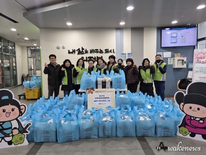 어웨이크뉴스 오경하 기자 | 의정부시 송산3동행정복지센터는 2월 11일 설 명절을 맞아 송산3동 지역사회보장협의체와 취약계층 100가구를 대상으로 ‘설 명절 맞이 복(福)주머니 나눔’ 행사를 실시했다.