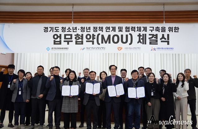 어웨이크뉴스 오경하 기자 | 수원시청소년청년재단은 2월 12일, 경기도미래세대재단, 성남시청소년청년재단, 시흥시청소년청년재단과 함께 ‘경기도 청년 정책 연계 및 협력체계 구축을 위한 업무협약’을 체결했다.