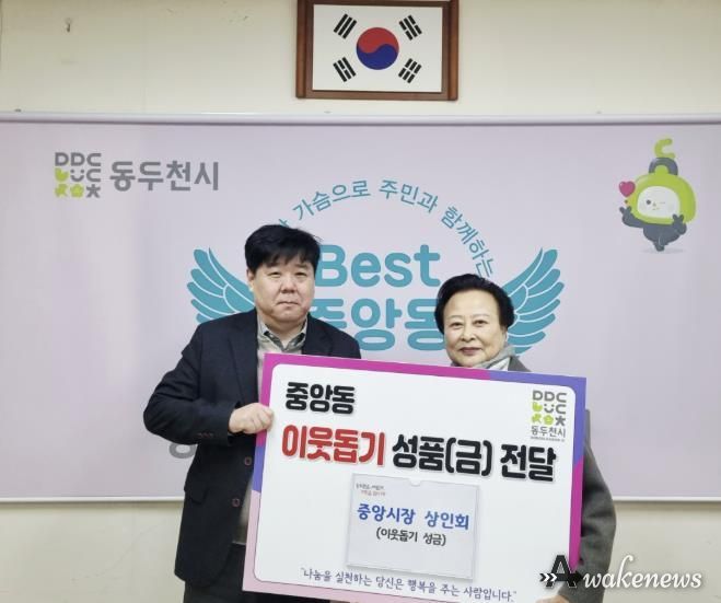 어웨이크뉴스 오경하 기자 | 동두천시 중앙시장 상인회는 지난 10일 설을 맞아 이웃돕기 성금 30만 원을 중앙동 행정복지센터에 전달했다고 밝혔다.