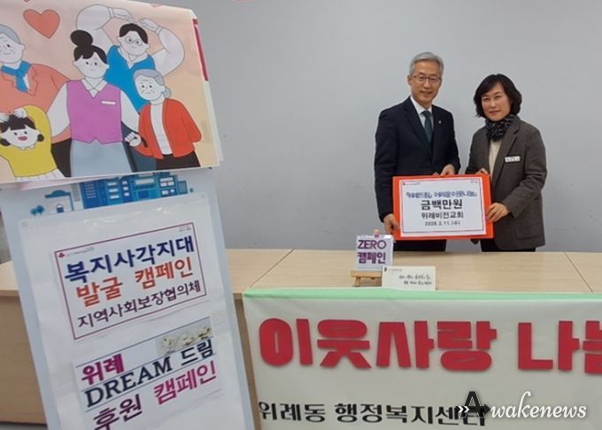 어웨이크뉴스 오경하 기자 | 위례비전교회는 11일 취약계층을 위해 성금100만원을 지역사회보장협의체에 기탁했다.