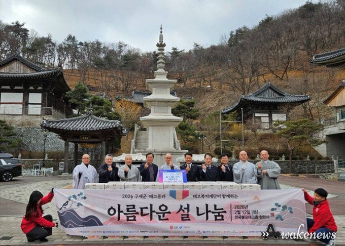어웨이크뉴스 오경하 기자 | 양주시 장흥면은 최근 한국불교태고종 청련사에서 구세군과 한국불교태고종, 태고복지재단과 함께 ‘2026년 아름다운 설 나눔 키트 전달식’을 개최했다.