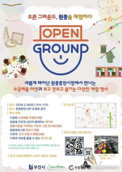 어웨이크뉴스 오경하 기자 | 부천시는 2월 28일 오정구 원종동에 소재한 원종중앙시장(부천시 오정구 성오로124번길 47)에서 변화된 시장 공간을 시민이 직접 체험하는 ‘오픈 그라운드, 원종을 체험하다’ 행사를 연다.