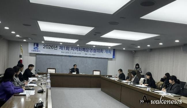 어웨이크뉴스 오경하 기자 | 수원특례시가 24일 시청 상황실에서 ‘2026년 제1회 수원시 지역화폐운영협의회 회의’를 열고 지역화폐 운영 활성화를 위한 주요 현안을 논의했다.