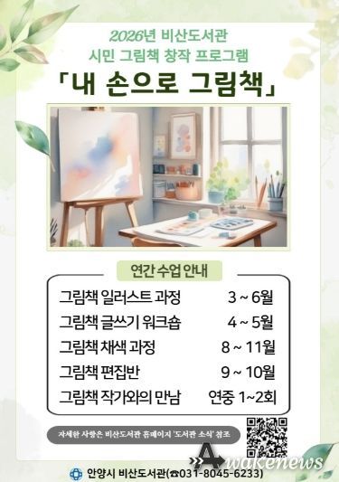 어웨이크뉴스 오경하 기자 | 안양시 비산도서관은 시민들이 직접 그림책을 만드는 ‘내 손으로 그림책’ 프로그램을 운영한다고 25일 밝혔다.