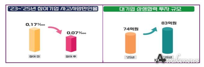 올해는 대기업 220곳이 중소기업 3,160곳과 함께 참여한다. 상생협력 투자 금액은 지난해보다 11.3%(74→83억 원) 증가할 예정이고, 사망·중상해 재해가 발생한 고위험 협력업체, 거래관계가 없는 지역 중소기업 등 안전관리 손길이 필요한 분야에 대한 지원을 강화한다.