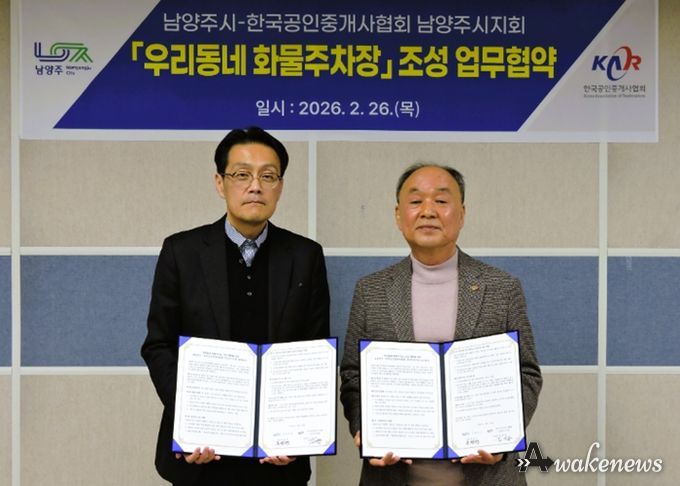 어웨이크뉴스 오경하 기자 | 남양주시는 지난 26일 한국공인중개사협회 남양주시지회와 ‘우리동네 화물주차장’ 조성 상호협력을 위한 업무협약(MOU)을 체결했다고 27일 밝혔다.