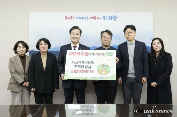 어웨이크뉴스 오경하 기자 | 한국전력공사 전력기자재센터가 3월 3일, 의왕시 저소득층을 위해 온누리상품권 300만원을 기부했다.