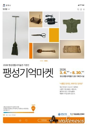 어웨이크뉴스 오경하 기자 | 팽성생활사박물관은 2026년 3월 4일부터 8월 30일까지 팽성생활사박물관 기획전시실에서 2026년 상반기 기증전 '팽성기억마켓 – 사용감 있어요, 이야기도 있어요'를 개최한다.