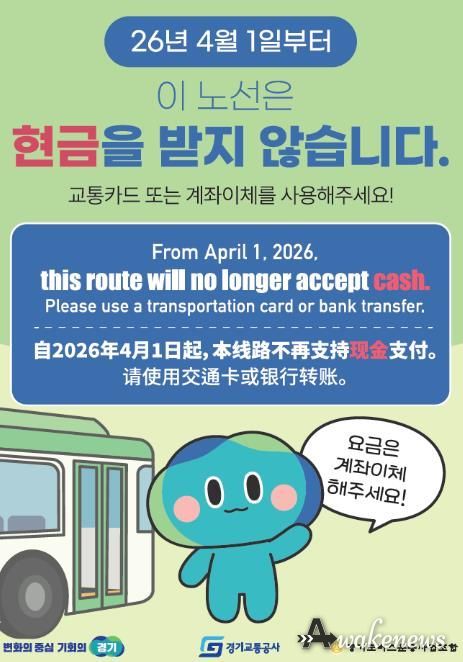 어웨이크뉴스 오경하 기자 | 경기도는 오는 4월 1일부터 ‘현금없는 버스’를 성남과 용인 등 80개 노선으로 확대 운영한다고 5일 밝혔다.
