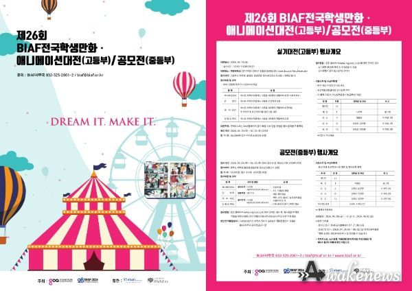어웨이크뉴스 오경하 기자 | 제28회 부천국제애니메이션페스티벌이 애니메이션 인재양성사업의 일환으로 ‘제26회 BIAF전국학생만화·애니메이션대전/공모전’을 오는 4월 11일 부천대학교에서 개최한다.