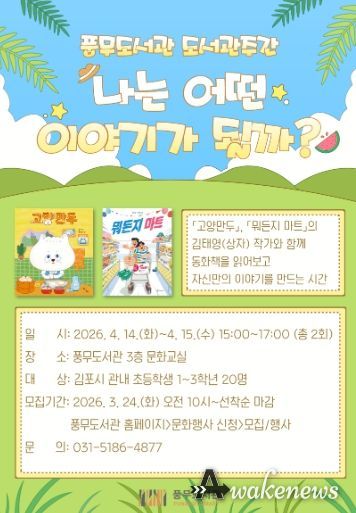 참여 신청은 3월 24일 오전 10시부터 풍무도서관 홈페이지에서 할 수 있으며, 김포시 관내 초등학생 1~3학년 20명을 선착순으로 모집한다