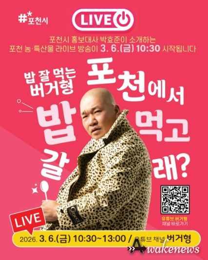 어웨이크뉴스 오경하 기자 | 포천시는 시 홍보대사이자 유튜버 ‘버거형’으로 활동 중인 배우 박효준이 포천의 농·특산물을 소개하는 유튜브 생방송을 진행한다고 밝혔다.