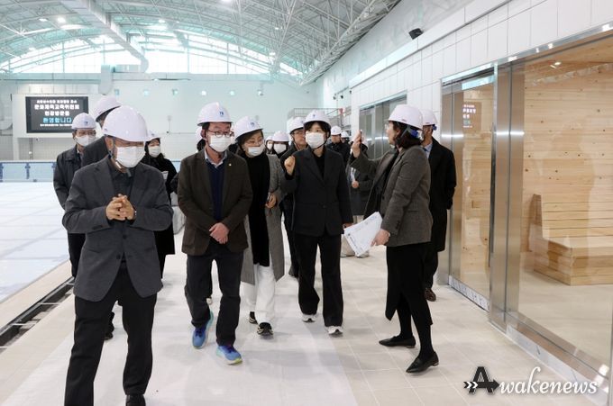 어웨이크뉴스 오경하 기자 | 수원특례시의회 문화체육교육위원회(위원장 장미영)는 제399회 임시회 기간 중인 6일, 리모델링 공사가 진행 중인 ‘새천년수영장’ 현장을 방문해 공사 진행 상황을 점검하고 향후 운영 방향을 논의했다.