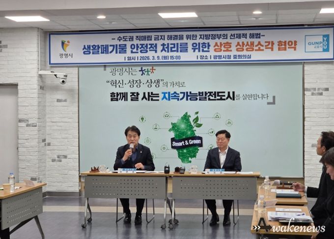 군포시는 전국 최초로 수도권 기초지자체간 생활폐기물 소각시설을 공동이용하는 상생형 자원순환 협력모델을 만들고 광명시와 3월 9일 업무 협약을 맺었다고 밝혔다.