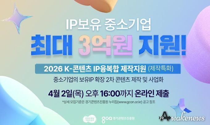 어웨이크뉴스 오경하 기자 | 경기도가 ‘2026 K-콘텐츠 IP(지식재산권) 융복합 제작 지원사업(제작 특화)’에 참여할 기업을 오는 4월 2일까지 모집한다.