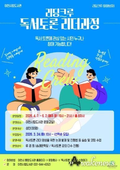 어웨이크뉴스 오경하 기자 | 이천시립도서관이 시민이 함께 읽고 나누는 새로운 독서 프로젝트 ‘리딩크루 : 함께읽기’를 시작한다.