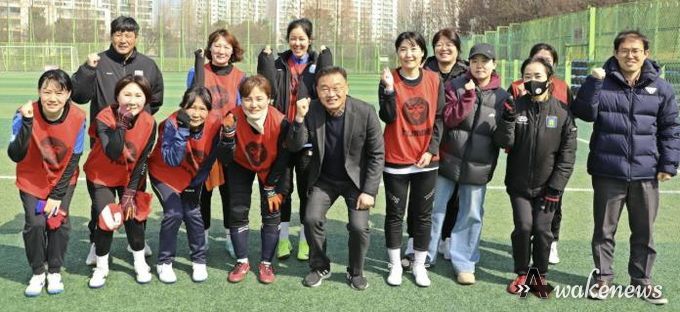 어웨이크뉴스 오경하 기자 | 황규돈 팔달구청장은 지난 10일, 팔달구 여성축구단 훈련 현장을 방문하여 선수들을 격려하고 소통을 위한 간담회 시간을 가졌다. 이번 방문은 여성들의 축구 종목 진입 장벽을 낮추는 한편, 올 한 해 모든 선수가 부상 없이 안전하게 훈련에 임하며 마음껏 기량을 펼치길 기원하는 취지에서 마련됐다.