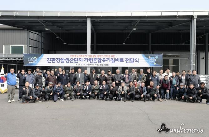 가평군농업기술센터는 11일 기술센터 친환경농산물집하장 앞에서 ‘2026년 친환경쌀생산단지 가평혼합유기질비료 전달식’을 가졌다고 밝혔다.