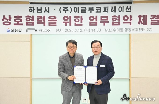 어웨이크뉴스 오경하 기자 | 하남시는 3월 12일 ㈜이글루코퍼레이션과 본사 이전을 위한 업무협약(MOU)을 체결하고 AI 특화도시 조성을 위한 협력 기반을 공식화했다.