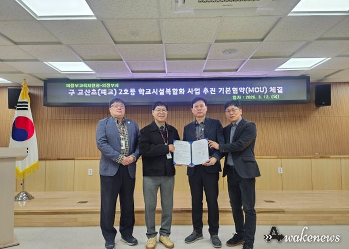 어웨이크뉴스 오경하 기자 | 의정부교육지원청은 3월 12일 의정부시와 구 고산초등학교(폐교) 2호동을 활용한 학교복합화 사업 추진을 위해 기본 협약을 체결했다고 밝혔다.