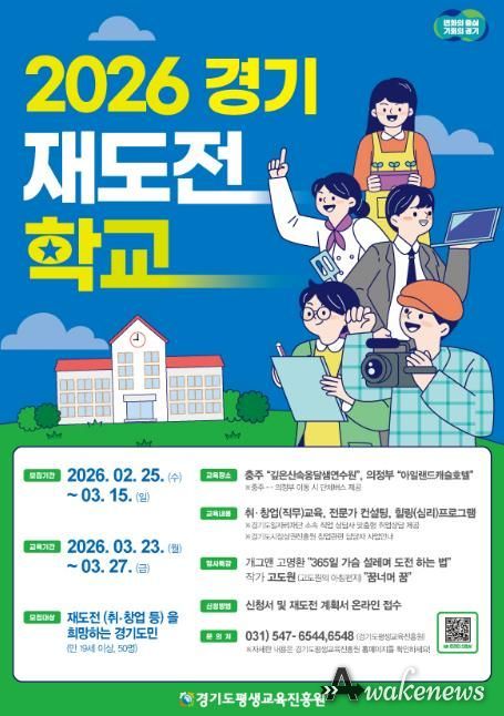 어웨이크뉴스 오경하 기자 | 경기도와 경기도평생교육진흥원은 취업이나 창업 실패를 경험한 도민의 재도약을 지원하기 위해 지난달 25일부터 이번 달 15일까지 ‘2026년 경기 재도전학교’ 제1기 참가자 모집을 완료했다.