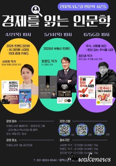 이번 강연은 ‘경제를 읽는 인문학’을 주제로 총 3회에 걸쳐 진행되며, 각 분야 전문가를 초청해 2026년 트렌드, 부동산, 주식 등 시민들의 실생활과 밀접한 경제 이슈를 인문학적 관점에서 풀어낼 예정이다.