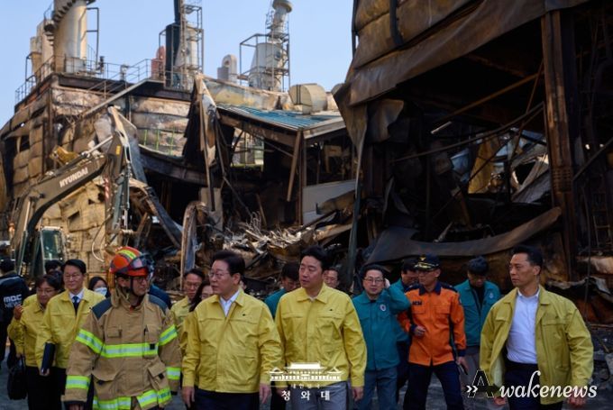 어웨이크뉴스 오경하 기자 | 이재명 대통령은 21일 오후, 20일 대전 대덕구에서 발생한 안전공업 화재 현장을 찾아 피해 상황과 구조활동 전반을 점검하고, 유가족들의 목소리를 청취했다.