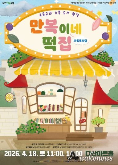 어웨이크뉴스 오경하 기자 | 남양주시는 오는 4월 18일 다산아트홀에서 남양주문화재단이 가족 뮤지컬 ‘만복이네 떡집’을 선보인다고 23일 밝혔다.
