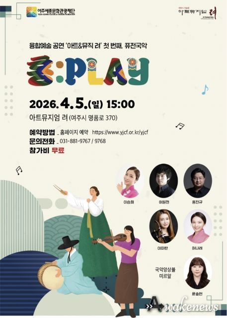 여주세종문화관광재단은 '아트뮤지엄 려'에서 2026. 4. 5. 오후 3시, 미술전시와 공연예술을 함께 보고 듣는 융합예술 공연 ‘아트&뮤직 려’ 프로그램을 진행한다. 2026년 융합예술 공연에는 여주를 기반으로 활발히 활동하는 국악, 재즈, 클래식, 밴드, 사물연희 등의 공연예술단체들이 참여한다.