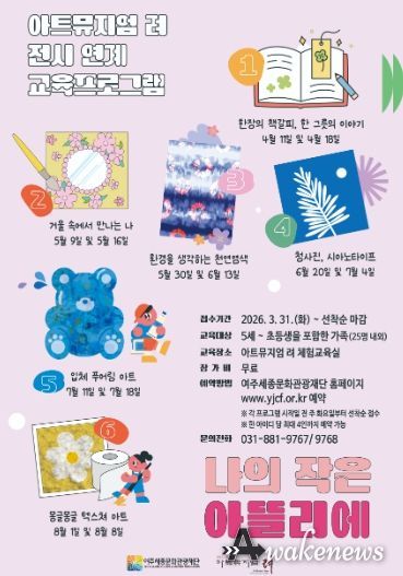 어웨이크뉴스 오경하 기자 | 여주세종문화관광재단은 오는 4월 11일부터 전시 연계 체험교육 프로그램 '나의 작은 아뜰리에'를 아트뮤지엄 려에서 운영한다고 밝혔다.