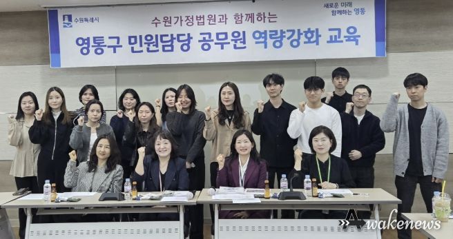 어웨이크뉴스 오경하 기자 | 수원시 영통구는 지난 25일, 영통구청 상황실에서 구청 및 12개 동 민원 담당 공무원을 대상으로 수원가정법원과 함께하는 역량 강화 교육을 실시했다.