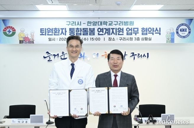 어웨이크뉴스 오경하 기자 | 구리시는 입원 치료 후 퇴원(예정) 환자의 안정적인 지역사회 복귀를 지원하기 위해 한양대학교구리병원과 ‘퇴원 환자 통합 돌봄 지원 업무협약’을 지난 3월 25일 체결했다고 밝혔다.