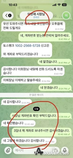 특히 해커는 메시지를 받은 시민이 본인 확인을 위해 전화 통화를 요청하자 “지금 중요한 분과 면회 중이라 통화가 불편하다”는 핑계를 대며 직접적인 대화를 피하는 치밀함을 보였다. 이어 “우선 도와주면 내일 오전이나 오후쯤에 직접 전화하겠다”며 상대방을 안심시킨 뒤 이체를 유도하는 대담한 수법을 사용했다.