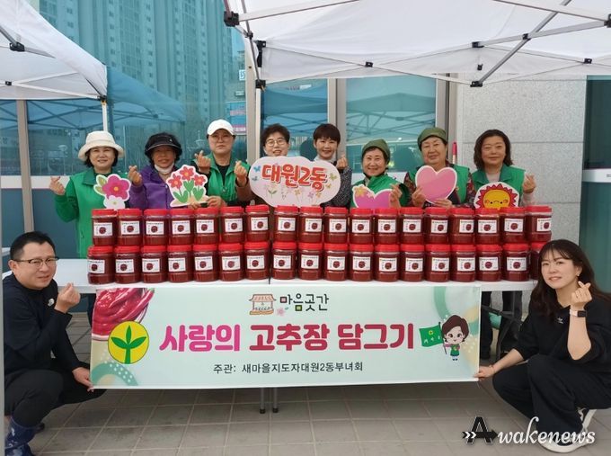 오예순 새마을지도자 대원2동 부녀회장은 “회원들의 정성을 담아 만든 고추장이 많은 분들께 도움이 되기를 바란다”며 “앞으로도 다양한 나눔 활동을 통해 이웃사랑을 지속적으로 실천해 나가겠다”고 말했다.
