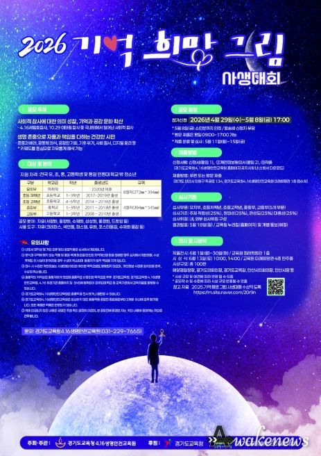 어웨이크뉴스 오경하 기자 | 경기도교육청4.16생명안전교육원이 '2026 기억 희망 그림 사생대회’를 개최한다.