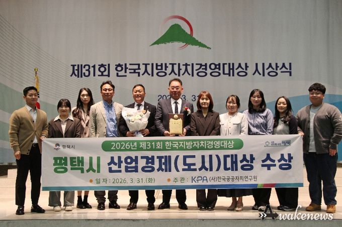 어웨이크뉴스 오경하 기자 | 평택시가 (사)한국공공자치연구원이 주관한 '2026년 제31회 한국지방자치경영대상’에서 산업경제(도시) 부문 대상을 받았다.