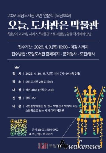 어웨이크뉴스 오경하 기자 | 김포시 모담도서관에서는 4월 30일과 5월 7일 저녁 7시부터 9시까지 ‘오늘, 도서관은 박물관’ 강좌를 운영한다.