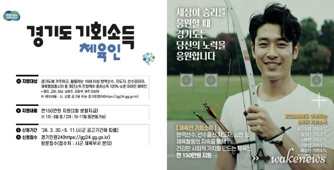 ‘체육인 기회소득’ 사업은 지역사회 발전에 기여하는 체육인에게 정당한 보상을 제공하고, 지속 가능한 활동 기반을 마련하기 위해 추진된다. 선정된 대상자에게는 1인당 연 150만 원의 지원금을 2회에 걸쳐 75만 원씩 분할 지급할 계획이다.